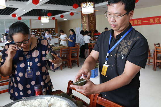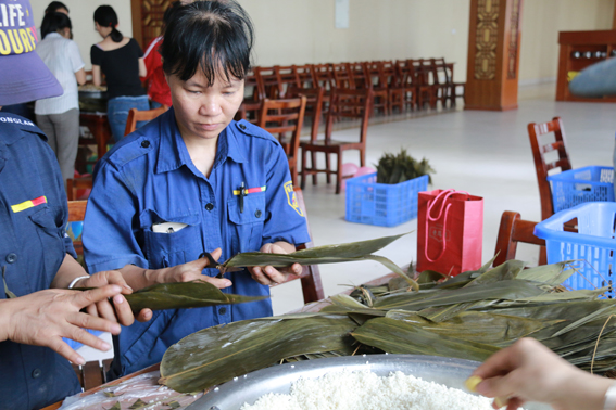 (一)“粽”覽巧手——包粽子大賽 下午三點(diǎn),在人事行政經(jīng)理雷斐的一番精彩講話后,包粽比賽正式開始!由公司各部門組成包粽小組紛紛大顯身手,拿出看家絕活,女同事們手法嫻熟把一個(gè)個(gè)粽子包的非常精美,財(cái)務(wù)主管李懷新更是秀了一把好手藝,他包的粽子有棱有角,端端正正,三兩下子一個(gè)飽滿美觀的粽子就完成了!正是鐵漢也有柔情一面!良芯小組的男同事也不甘示弱,邊看邊學(xué),認(rèn)認(rèn)真真地完成了包粽任務(wù)。最后,財(cái)務(wù)部采購(gòu)部小組憑借實(shí)力獲得了本次包粽比賽的冠軍,董事長(zhǎng)助理兼財(cái)務(wù)中心總監(jiān)莫麗軍為冠軍隊(duì)伍頒發(fā)獎(jiǎng)品。 (二)“粽”享美好——送愛(ài)心粽,慰問(wèn)在崗員工 傍晚七點(diǎn),公司行政部將一筐熱乎乎的粽子送到車間,遞到了包裝女工黃小英手中。黃小英高興地接過(guò)粽子連忙道謝。送粽子的小推車來(lái)到了車間的每個(gè)角落,給節(jié)假日仍堅(jiān)守在一線崗位上的員工送去端午節(jié)的問(wèn)候與祝福。