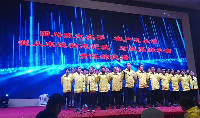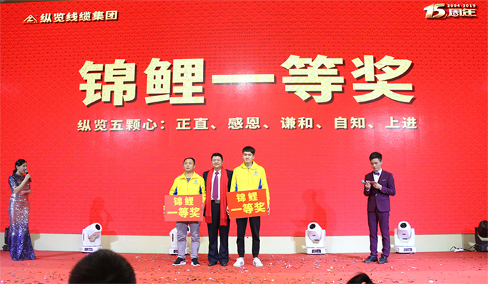 董事長致詞圖片 回顧2018,成績斐然;展望2019,我們信心滿懷!“天道酬勤、商道酬信、人道酬德、業(yè)道酬精”,新的一年,新的時期,縱覽人將堅持以“團結(jié)拼博、誠實守信、勇于擔當,做負責(zé)任的人,做最好的線纜”為行為準則,向著更高的目標邁進! 第一篇 激情表彰篇 有人說:一堆沙子是松散的,可是它和水泥、石子、水,混合后,比花崗巖還堅韌!一根麻繩是脆弱的,可是千百根麻繩捆成一股,它比鋼鏈還牢固!一個戰(zhàn)士的力量是有限的,可是千百個戰(zhàn)士團結(jié)在一起,就成為無堅不摧的力量!這就是團隊的力量、團結(jié)就是力量!縱覽人攻必克、戰(zhàn)必勝的力量! 縱覽十五年,正是因為有著這樣一批勤勤懇懇、默默付出、堅守產(chǎn)品品質(zhì)、悍衛(wèi)企業(yè)榮譽的優(yōu)秀縱覽人,才有了縱覽的今日輝煌! 2018年度質(zhì)量標兵獎圖片 【頒獎詞】品質(zhì)是企業(yè)的明鏡,透視著企業(yè)發(fā)展中每一步的艱苦跋涉;在縱覽人心中:品質(zhì)是責(zé)任、品質(zhì)是榮譽!質(zhì)量標兵們,用精益求精沉淀出卓越品質(zhì)!用卓越品質(zhì)鍛造出質(zhì)量的靈魂! 2018年度優(yōu)秀員工獎圖片 【頒獎詞】偉大出于平凡,平凡蘊涵精彩!謝謝你們?yōu)榭v覽的辛勤付出!我們將以你們?yōu)榘駱?,在工作崗位上兢兢業(yè)業(yè)、發(fā)揮主人翁精神,為我們共同美好的明天而繼續(xù)奮斗! 2018年度忠誠骨干員工獎圖片(5年以上) 【頒獎詞】藍天的廣闊,是白云的堅守;大地的博大,是綠草的堅守;奇跡的出現(xiàn),是堅持的堅守;縱覽的發(fā)展,是因為有你們的堅守!感謝你們的忠心護主、辛勤付出!你們就是縱覽的楷模!縱覽的驕傲! 2018年度業(yè)績突出貢獻獎圖片 【頒獎詞】2018年,縱覽業(yè)績再次實現(xiàn)逆勢大增長,而這增長的背后,是有一個敢戰(zhàn)、能戰(zhàn)、善戰(zhàn)的鷹之團隊,他們不畏環(huán)境險惡,飛得高、望得遠,發(fā)現(xiàn)目標就頑強地追尋!他們不斷自我加壓、堅持突破,用出色的業(yè)績詮釋了什么是真正的王者之師! 凝聚產(chǎn)生力量、團結(jié)誕生希望!縱覽的每一個成就,都凝聚著全體縱覽人的辛勞和汗水,光榮屬于我們縱覽人! 第二篇 精彩競演篇 方隊展示拉開競演大幕,這個環(huán)節(jié)拼的是團隊精神,你看,誰,也不服誰呢! 氣勢磅薄的方隊精彩亮相,展現(xiàn)了縱覽團隊的氣勢、創(chuàng)意和不掉隊、不服輸團隊精神! 才藝競演環(huán)節(jié)有你絕對想不到的精彩:縱覽人就是這樣,:工作中是精英,舞臺上是明星!團隊有著迷一樣的自信! 開場舞《相伴-同行》表演者:中層管理人員 合唱《達產(chǎn)達標不是夢》表演者:生產(chǎn)部+廣東公司聯(lián)隊 舞蹈《縱覽工人有力量》表演者:質(zhì)量部+工藝部+設(shè)備部+總工辦聯(lián)隊 小品《一路有你》表演者:采購部+財務(wù)部聯(lián)隊 復(fù)古舞臺劇《歌舞青春》表演者:商務(wù)部+倉儲部聯(lián)隊 情景舞蹈《幸??v覽人》表演者:人力資源部+行政部聯(lián)隊 詩朗誦《我自豪,我是縱覽人》表演者:大客戶部+市場部+技術(shù)服務(wù)部聯(lián)隊 舞蹈《隔壁泰山》表演者:質(zhì)量部 現(xiàn)場氣氛嗨爆!精彩的不要不要的,你看了,是否有心動,有想加入的沖動呢?! 第三篇 感恩家人篇 作為縱覽人,我們是自豪的!作為縱覽人,我們更是感恩的,在縱覽成長的過程中,我們不會忘記,一路幫扶著我們的朋友和家人;更不會忘記,一批批曾為縱覽發(fā)展付出直至退休的縱覽人! 公司向歷屆在縱覽退休的員工代表送上慰問金 才藝秀 演唱《Demons》+書法秀 表演者:縱覽家人 陳思凱 古箏演奏《女人花》表演者:縱覽家人 黃欽湘 情境舞蹈《大王叫我來巡山》表演者:縱覽家人 梁世軒等小朋友 演唱《敢問路在何方》表演者:縱覽集團高管團隊 第四篇 歡樂不停篇 特別的中獎方式:你的愿望我買單!縱覽助你實現(xiàn)2019你的錦鯉愿望!興奮嗎?。?! 中獎人要和主持人對上暗號才能領(lǐng)獎!看到了嗎,答案就在他背面的大屏上! 幸好這些理念縱覽伙伴們早已熟爛于心了,回答的溜溜的! 年會財神爺扮演者居然被抽中了錦鯉特等獎,天意??! 看到了嗎?大屏上愿望單就是他親筆寫下的愿望---當然,縱覽助你實現(xiàn)! 不夠不夠,縱覽十五周年,表演抽獎都結(jié)束了,還要再加個送幸運錦鯉福袋,按抽中的桌爆獎!被抽中的桌每個人都會得到福袋哦,你興奮嗎! 第五篇 祝福篇 讓我們共同舉杯,為2019縱覽更加輝煌燦爛,取得更好的業(yè)績,干杯---! 過去的成績,是縱覽人十四年如一日,堅持不懈爭做最好的成果;是縱覽人用信用、責(zé)任與擔當換來的成果;這成果來之不易,我們縱覽人要努力保護并不斷擴大這個成果,讓這個成果成為推動縱覽高質(zhì)量發(fā)展的源動力。 2019年,縱覽人將肩負著更大的責(zé)任和使命,我們將以昂揚的斗志,踏上新夢想與新征程。讓我們緊緊圍繞著集團公司的經(jīng)營發(fā)展目標,團結(jié)一心、攜手共進,譜寫縱覽美好的新篇章! 祝??v覽、祝??v覽人!