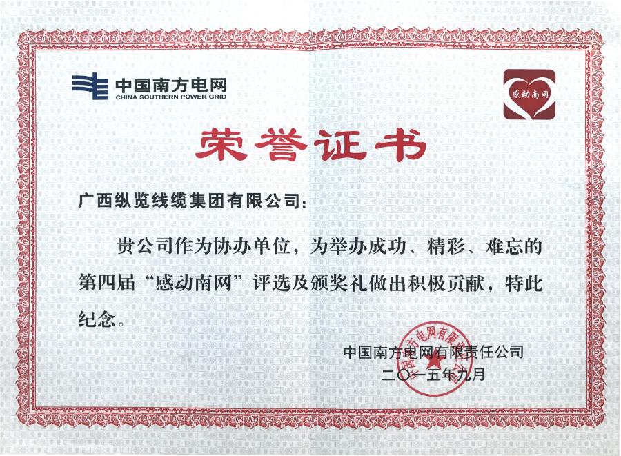 2015年獲得感動(dòng)南網(wǎng)榮譽(yù)證書