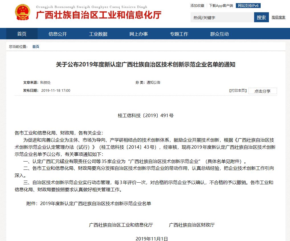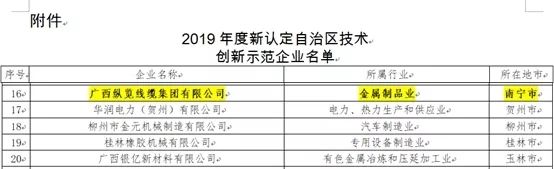近日,廣西壯族自治區(qū)工業(yè)和信息化廳、廣西壯族自治區(qū)財政廳公布了2019年度新認(rèn)定廣西壯族自治區(qū)技術(shù)創(chuàng)新示范企業(yè)名單。廣西縱覽線纜集團有限公司成功上榜。