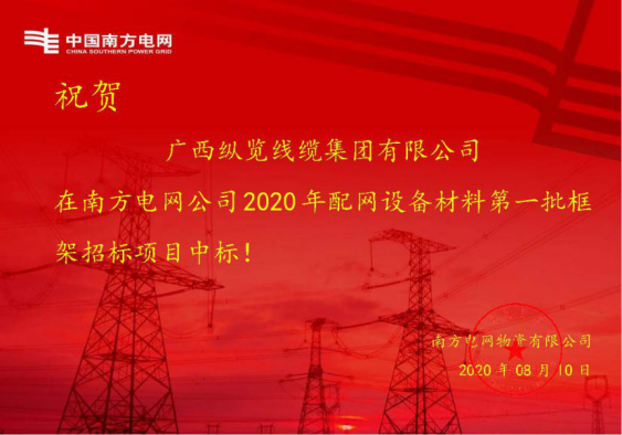 近日,中國南方電網(wǎng)公司公布了2020年配網(wǎng)設(shè)備材料第一批框架項(xiàng)目招標(biāo)結(jié)果,縱覽線纜集團(tuán)取得優(yōu)異的成績(jī),合計(jì)中標(biāo)金額約達(dá)4億元!這充分證明了南方電網(wǎng)對(duì)縱覽線纜集團(tuán)綜合實(shí)力的認(rèn)可,也是縱覽線纜集團(tuán)十六年全心服務(wù)南方電網(wǎng),堅(jiān)持“做最好的線纜”的成果體現(xiàn)! 縱覽集團(tuán)是國家CNAS認(rèn)可的檢測(cè)中心,省級(jí)認(rèn)定的企業(yè)技術(shù)中心和自治區(qū)級(jí)研發(fā)中心;擁有RXX改性聚氯乙烯絕緣改性聚氯乙烯護(hù)套軟電纜、0.6/1kV環(huán)保型無鹵低煙阻燃電力電纜、額定電壓0.6/1kV交聯(lián)聚乙烯絕緣室內(nèi)外安裝電線、新型中壓耐火電力電纜、鋁合金中低壓電力電纜、智能防火家裝線系列產(chǎn)品等20多項(xiàng)新產(chǎn)品。研發(fā)出的高導(dǎo)電耐熱鋁合金導(dǎo)線已列入2018年南寧市科學(xué)研究與技術(shù)開發(fā)計(jì)劃重點(diǎn)研發(fā)項(xiàng)目。 縱覽集團(tuán)是廣西最大的電纜生產(chǎn)基地和中高壓導(dǎo)線生產(chǎn)基地。獲得了“中國電線電纜行業(yè)最具競(jìng)爭(zhēng)力百強(qiáng)企業(yè)”、“全國工業(yè)品牌培育示范企業(yè)”、“2019年中國機(jī)械500強(qiáng)”、“廣西電線電纜行業(yè)龍頭企業(yè)”等殊榮。 做好產(chǎn)品回報(bào)客戶,做好企業(yè)回報(bào)社會(huì)!縱覽人不忘初心,堅(jiān)持做負(fù)責(zé)任的人,做最好的線纜! |