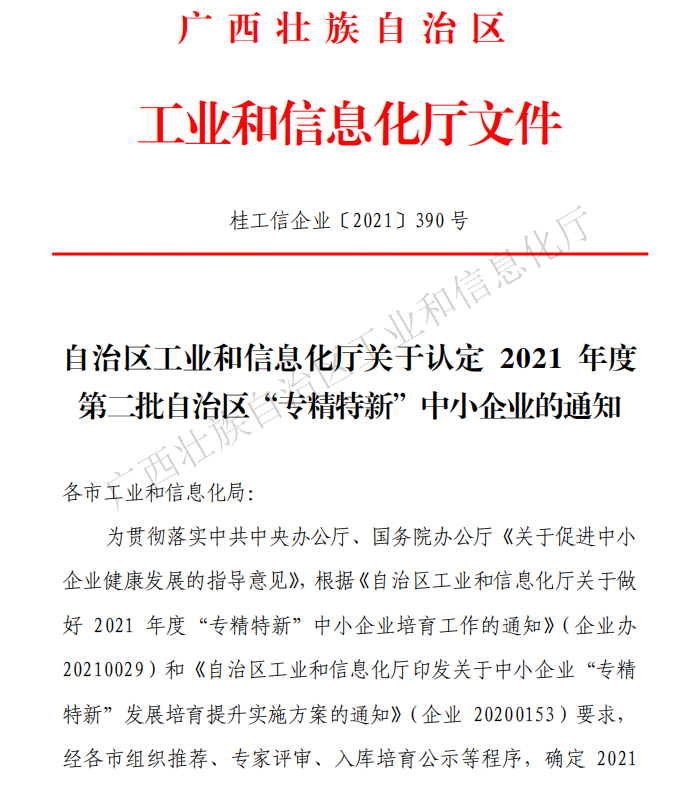 日前,廣西工信廳發(fā)布了2021年度第二批自治區(qū)“專精特新”企業(yè)認(rèn)定名單,我司榜上有名。 我司自成立以來(lái),高度重視產(chǎn)品開(kāi)發(fā)、技術(shù)創(chuàng)新、科研投入、人才建設(shè)工作,為公司持續(xù)健康、高質(zhì)量發(fā)展奠定了堅(jiān)實(shí)基礎(chǔ)。已建設(shè)成為集電線電纜上下游產(chǎn)品研發(fā)、生產(chǎn)、銷售為一體的國(guó)家級(jí)高新技術(shù)企業(yè),廣西最大的電纜生產(chǎn)基地和中高壓導(dǎo)線生產(chǎn)基地,廣西智能制造示范企業(yè),廣西機(jī)械工業(yè)行業(yè)10強(qiáng)企業(yè)、廣西技術(shù)創(chuàng)新示范企業(yè)。在廣西線纜行業(yè)中,是唯一榮獲“全國(guó)工業(yè)品牌培育示范企業(yè)”,唯一建立有國(guó)家CNSA認(rèn)可實(shí)驗(yàn)室的企業(yè),唯一榮獲“國(guó)家級(jí)綠色工廠”的企業(yè),唯一榮獲“自治區(qū)政府質(zhì)量獎(jiǎng)和市級(jí)政府質(zhì)量獎(jiǎng)”的企業(yè),唯一全系列產(chǎn)品獲得進(jìn)入”廣西名優(yōu)工業(yè)產(chǎn)品”名錄的企業(yè);已連續(xù)兩年進(jìn)入廣西企業(yè)100強(qiáng),連續(xù)三年進(jìn)入廣西民營(yíng)企業(yè)100強(qiáng)。 |