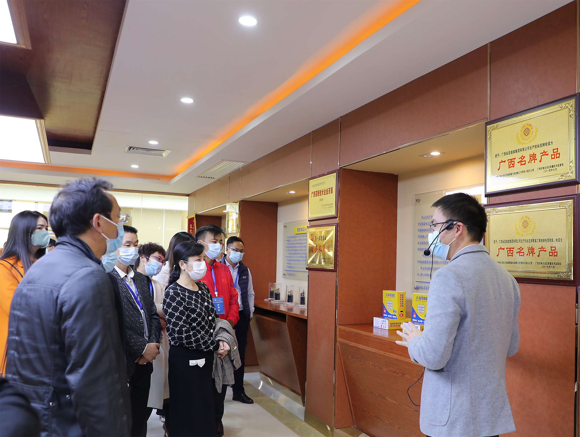 12月14日,民建廣西區(qū)直工委專(zhuān)職副主委鄧劍云帶領(lǐng)廣西民建企業(yè)家會(huì)員培訓(xùn)班學(xué)員50余位企業(yè)家走進(jìn)縱覽集團(tuán)開(kāi)展研學(xué)活動(dòng),我司領(lǐng)導(dǎo)劉小祥、吳培軍、陳思行接待,市場(chǎng)副總監(jiān)蘇宏發(fā)負(fù)責(zé)了參觀環(huán)節(jié)講解。 企業(yè)家們到達(dá)公司后,先是參觀了公司智能監(jiān)造系統(tǒng)、產(chǎn)品展廳、國(guó)家CNAS認(rèn)可實(shí)驗(yàn)室、生產(chǎn)車(chē)間。 隨后,企業(yè)家們來(lái)到縱覽多功能廳開(kāi)展座談交流,現(xiàn)場(chǎng)觀看了縱覽集團(tuán)宣傳片,人力總監(jiān)吳培軍作了“卓越績(jī)效模式