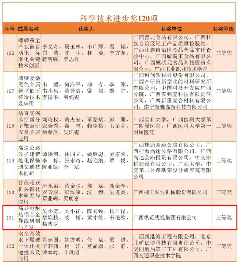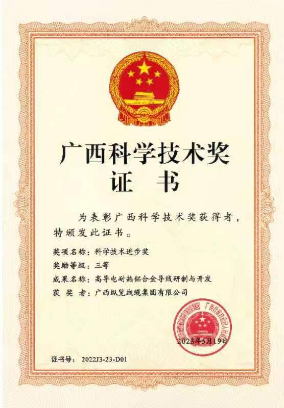 近日,2023年廣西科學(xué)技術(shù)獎(jiǎng)勵(lì)大會(huì)在南寧隆重舉行,會(huì)議表彰了獲得2022年度廣西科學(xué)技術(shù)獎(jiǎng)獲獎(jiǎng)單位和人員。自治區(qū)黨委書(shū)記、自治區(qū)人大常委會(huì)主任劉寧出席大會(huì),自治區(qū)黨委副書(shū)記、自治區(qū)主席藍(lán)天立在會(huì)上講話,并共同為獲獎(jiǎng)代表頒獎(jiǎng)。 我集團(tuán)研發(fā)團(tuán)隊(duì)科研成果《高導(dǎo)電耐熱鋁合金導(dǎo)線研制與開(kāi)發(fā)》項(xiàng)目榮獲2022年度廣西科學(xué)技術(shù)進(jìn)步獎(jiǎng)三等獎(jiǎng)。 本項(xiàng)目發(fā)明的高導(dǎo)電耐熱鋁合金導(dǎo)線制備技術(shù),解決了長(zhǎng)期以來(lái)困擾國(guó)內(nèi)線纜制造企業(yè)該產(chǎn)品導(dǎo)電性能不穩(wěn)定、原材料品位純度要求高,生產(chǎn)效率低,難以批量生產(chǎn)的問(wèn)題。為國(guó)家電網(wǎng)和南方電網(wǎng)等電網(wǎng)公司高壓、超高壓輸電線路工程高導(dǎo)電耐熱鋁合金導(dǎo)線制備,提供了技術(shù)和生產(chǎn)保障。滿足了電力建設(shè)工程對(duì)輸電線路架空導(dǎo)線長(zhǎng)距離、大跨越、大傳輸容量、高導(dǎo)電率的技術(shù)要求。 這是縱覽線纜集團(tuán)近年來(lái)高度重視科研投入、加大力氣推進(jìn)創(chuàng)新工作的縮影,也是我集團(tuán)深入貫徹實(shí)施創(chuàng)新驅(qū)動(dòng)發(fā)展戰(zhàn)略,聚焦產(chǎn)業(yè)鏈深度融合,推動(dòng)產(chǎn)品優(yōu)化升級(jí),大力加強(qiáng)高質(zhì)量發(fā)展的重要成果。 下一步,縱覽線纜集團(tuán)將不忘初心,做創(chuàng)新驅(qū)動(dòng)發(fā)展排頭兵,為壯美廣西經(jīng)濟(jì)建設(shè)貢獻(xiàn)縱覽力量。 |