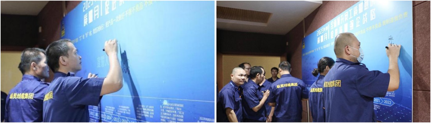 隨著第46個(gè)全國(guó)“質(zhì)量月”到來(lái),為深入貫徹落實(shí)黨中央、國(guó)務(wù)院關(guān)于建設(shè)質(zhì)量強(qiáng)國(guó)的重大決策部署,響應(yīng)國(guó)家市場(chǎng)監(jiān)督管理總局關(guān)于開(kāi)展2023年全國(guó)“質(zhì)量月”號(hào)召。9月1日,縱覽線纜集團(tuán)舉行了以“全面提升員工質(zhì)量意識(shí) 促進(jìn)質(zhì)量強(qiáng)企戰(zhàn)略”為主題的質(zhì)量月活動(dòng)啟動(dòng)儀式。集團(tuán)董事長(zhǎng)陳秀銳出席會(huì)議并動(dòng)員講話,質(zhì)量月活動(dòng)組委會(huì)組長(zhǎng)劉小祥,副組長(zhǎng)吳培軍、黎永豪,各中心分管領(lǐng)導(dǎo)、員工骨干等80人參加會(huì)議。 會(huì)議開(kāi)始前,與會(huì)人員積極自發(fā)參與質(zhì)量承諾簽名儀式,在寫(xiě)有“全面提升員工質(zhì)量意識(shí),促進(jìn)質(zhì)量強(qiáng)企戰(zhàn)略”的簽名墻上簽名,是與會(huì)人員對(duì)“我生產(chǎn),我負(fù)責(zé)”責(zé)任文化的莊嚴(yán)承諾。 質(zhì)量月活動(dòng)組委會(huì)組長(zhǎng)劉小祥向大家強(qiáng)調(diào)質(zhì)量月對(duì)企業(yè)的重要意義以及如何開(kāi)展全員質(zhì)量意識(shí)提升的講話;質(zhì)量月活動(dòng)組委會(huì)執(zhí)行組長(zhǎng)、質(zhì)量部經(jīng)理周軍宣讀了《關(guān)于開(kāi)展2023年“質(zhì)量月”活動(dòng)的通知》,并對(duì)“質(zhì)量月”產(chǎn)品質(zhì)量分享會(huì)、質(zhì)量管理知識(shí)競(jìng)賽和技能競(jìng)賽等活動(dòng)方案作講解說(shuō)明。 陳秀銳董事長(zhǎng)在作動(dòng)員講話時(shí)強(qiáng)調(diào),“質(zhì)量是做出來(lái)的,而非管出來(lái)的”。他要求全體縱覽人都要有質(zhì)量紅線意識(shí),質(zhì)量即縱覽立身之本、發(fā)展之基,更關(guān)乎消費(fèi)者的生命、企業(yè)的生命,是為實(shí)現(xiàn)縱覽高質(zhì)量發(fā)展的基礎(chǔ)保障。他指出,當(dāng)今行業(yè)內(nèi)產(chǎn)品質(zhì)量良莠不齊,縱覽作為廣西線纜行業(yè)的領(lǐng)跑者,要利用好長(zhǎng)期以來(lái)服務(wù)電網(wǎng)的質(zhì)量?jī)?yōu)勢(shì)、服務(wù)優(yōu)勢(shì);以“質(zhì)量月”活動(dòng)為契機(jī),持續(xù)提高全員質(zhì)量意識(shí)、提升員工專(zhuān)業(yè)技能水平、立好質(zhì)量管理標(biāo)桿,必須將質(zhì)量工作作為長(zhǎng)期的基礎(chǔ)性工作認(rèn)認(rèn)真真地抓實(shí)抓細(xì)、一步一個(gè)腳印地穩(wěn)步推進(jìn)。 最后,全體成員莊嚴(yán)宣誓,活動(dòng)領(lǐng)導(dǎo)小組與參會(huì)人員合影。 |