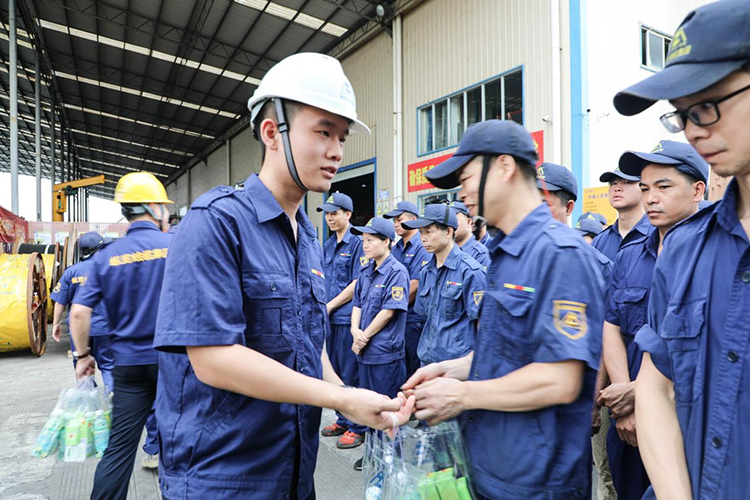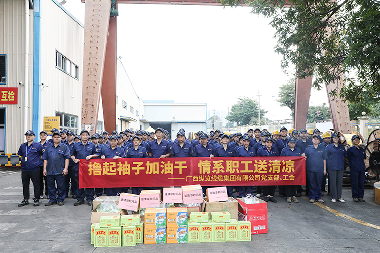 7月22日上午,廣西縱覽線纜集團黨支部、工會帶著清涼飲料、防暑藥品走進生產(chǎn)車間開展”擼起袖子加油干 情系職工送清涼“慰問活動,為奮斗在烈烈夏日里的一線生產(chǎn)員工送上的一縷清涼。集團常務(wù)副總經(jīng)理陳思源、集團支部書記吳培軍、工會主席陳楊、工廠中心副總監(jiān)黎永豪出席慰問活動。