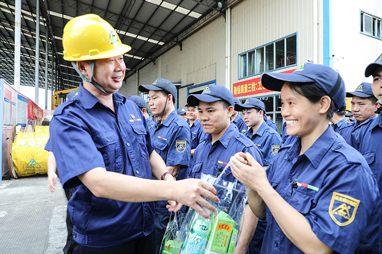活動現(xiàn)場,集團黨支部、工會為生產(chǎn)一線員工準備了王老吉、花露水、清涼油、藿香正氣水等防暑降溫物資,滿足職工們在高溫作業(yè)中的日常防護與緊急處理需求。出席活動集團領(lǐng)導將精心準備的“清涼禮包”發(fā)放到每一位員工手上,感謝他們勇戰(zhàn)高溫、堅守崗位的辛勤付出,并叮囑他們在夏季的工廠內(nèi)作業(yè)時注意防暑防曬、勞逸結(jié)合,確保平安度夏。