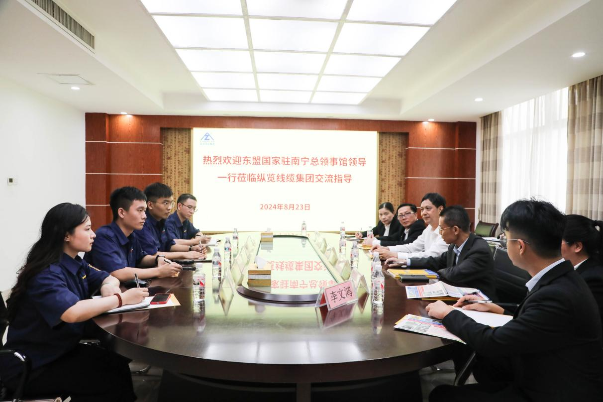 8月23日,老撾駐南寧總領(lǐng)事翁巴努·西巴色、柬埔寨駐南寧總領(lǐng)事館領(lǐng)事陳速成及相關(guān)外事人員在廣西貿(mào)促會、廣西國際商會副會長劉樹義的陪同下到廣西縱覽線纜集團(tuán)實(shí)地參觀考察。集團(tuán)總經(jīng)理陳思行、常務(wù)副總陳思源、副總工程師蘇宏發(fā)及相關(guān)外貿(mào)業(yè)務(wù)人員陪同參觀。 翁巴努總領(lǐng)事一行先后參觀了我集團(tuán)智能監(jiān)造系統(tǒng)、榮譽(yù)展廳、國家CNAS認(rèn)可實(shí)驗(yàn)室、生產(chǎn)車間,詳細(xì)了解了我集團(tuán)20年來在企業(yè)經(jīng)營管理、服務(wù)海外項(xiàng)目等方面所取得的成績。 座談會上,雙方圍繞如何推動廣西優(yōu)質(zhì)線纜產(chǎn)品走進(jìn)東盟市場、深化在采礦業(yè)、基礎(chǔ)建設(shè)等領(lǐng)域的合作展開了深入討論。陳思行詳細(xì)介紹了集團(tuán)的發(fā)展戰(zhàn)略與全球化布局,表達(dá)了對東盟市場的重視與期待。翁巴努則高度評價(jià)了縱覽服務(wù)電網(wǎng)多年來的產(chǎn)品的品質(zhì),相信縱覽集團(tuán)有能力服務(wù)老撾、柬埔寨等地的重大項(xiàng)目建設(shè),并表示東盟國家擁有豐富的資源與市場潛力,雙方合作前景廣闊。期待建立更加緊密的合作機(jī)制,實(shí)現(xiàn)優(yōu)勢互補(bǔ)、互利共贏,為中國--東盟合作友誼與合作注入新的活力。 |