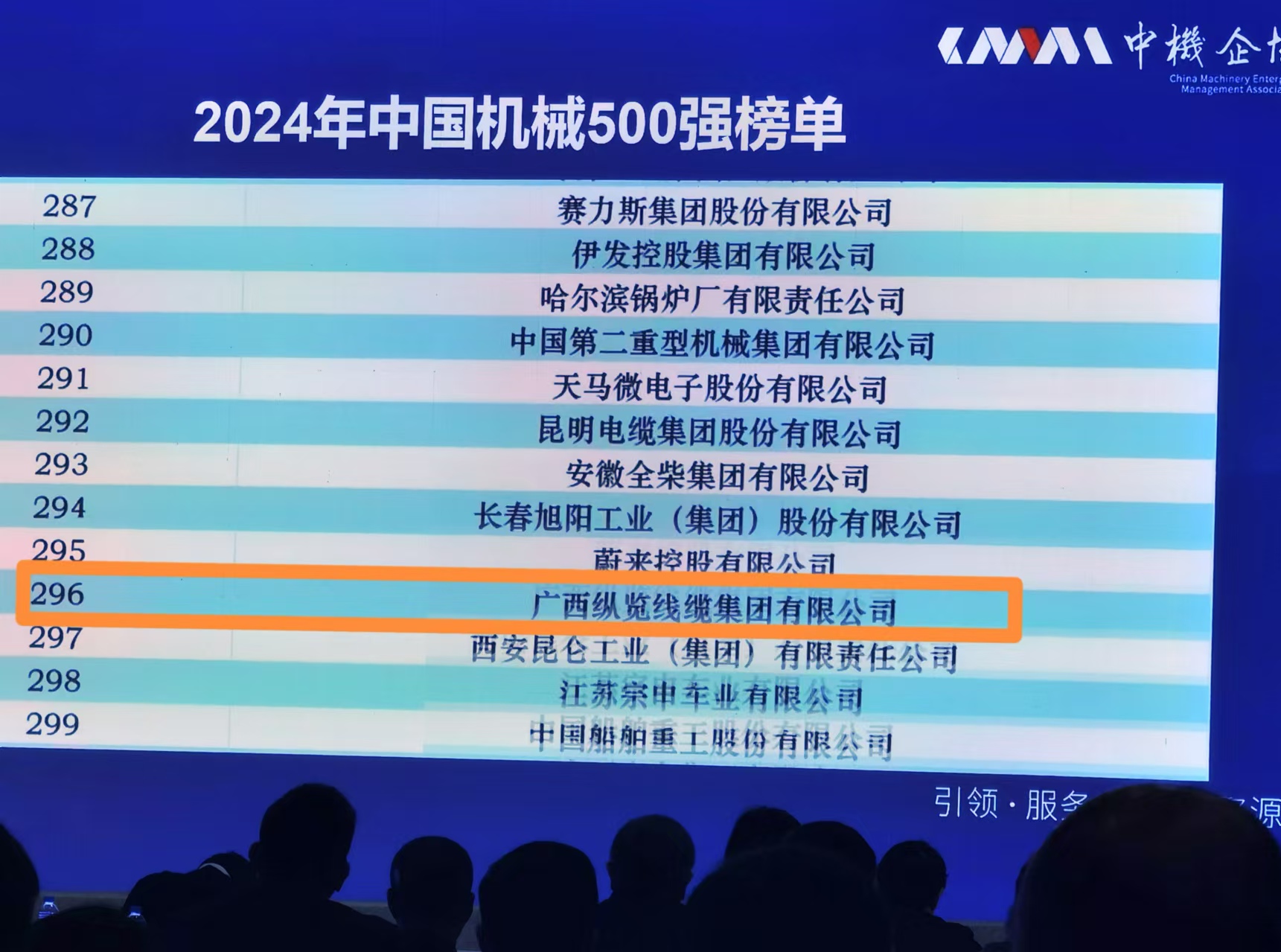 12月19日下午,由中國機械工業(yè)企業(yè)管理協(xié)會主辦的2024年世界一流暨中國機械500強研究報告發(fā)布會在成都隆重舉行,國家相關(guān)部委以及地方政府領(lǐng)導、協(xié)會領(lǐng)導、知名專家學者、入圍500強企業(yè)代表,以及新聞媒體記者等600余人出席活動。廣西縱覽線纜集團連續(xù)多年入選中國機械500強榜單,本次位列296位。  作為制造行業(yè)知名企業(yè),縱覽線纜集團創(chuàng)立 20 余年,一直專注于電線電纜的研發(fā)、生產(chǎn)、銷售與服務(wù),堅持創(chuàng)新驅(qū)動發(fā)展戰(zhàn)略,以智能化、數(shù)字化、綠色化激活發(fā)展活力,堅定不移地走“服務(wù)電網(wǎng),走進萬家”品牌發(fā)展道路,積極踐行科技創(chuàng)新、高效節(jié)約、環(huán)保低碳的高質(zhì)量發(fā)展理念,積極推動產(chǎn)業(yè)轉(zhuǎn)型升級,取得了豐碩的成果,先后獲得工信部全國工業(yè)品牌培育示范企業(yè)、國家級綠色工廠、自治區(qū)主席質(zhì)量獎(提名獎)、自治區(qū)制造業(yè)單項冠軍、中國線纜產(chǎn)業(yè)最具競爭力企業(yè) 100 強等榮譽。左二:集團黨支部書記、副總經(jīng)理吳培軍 上臺領(lǐng)獎“踔厲奮發(fā)擔使命,賡續(xù)前行穩(wěn)致遠”,此次榮登中國機械 500 強,對縱覽線纜集團而言既是榮耀,更是責任與動力。未來,我們將始終堅守“做好產(chǎn)品回報客戶,做好企業(yè)回報社會,就是對黨和國家最大的忠誠”的企業(yè)使命。未來,縱覽線纜將繼續(xù)發(fā)揮行業(yè)標桿引領(lǐng)作用,進一步增強企業(yè)核心競爭力,為構(gòu)建新發(fā)展格局、加快推進質(zhì)量強國建設(shè)持續(xù)貢獻縱覽力量! |
