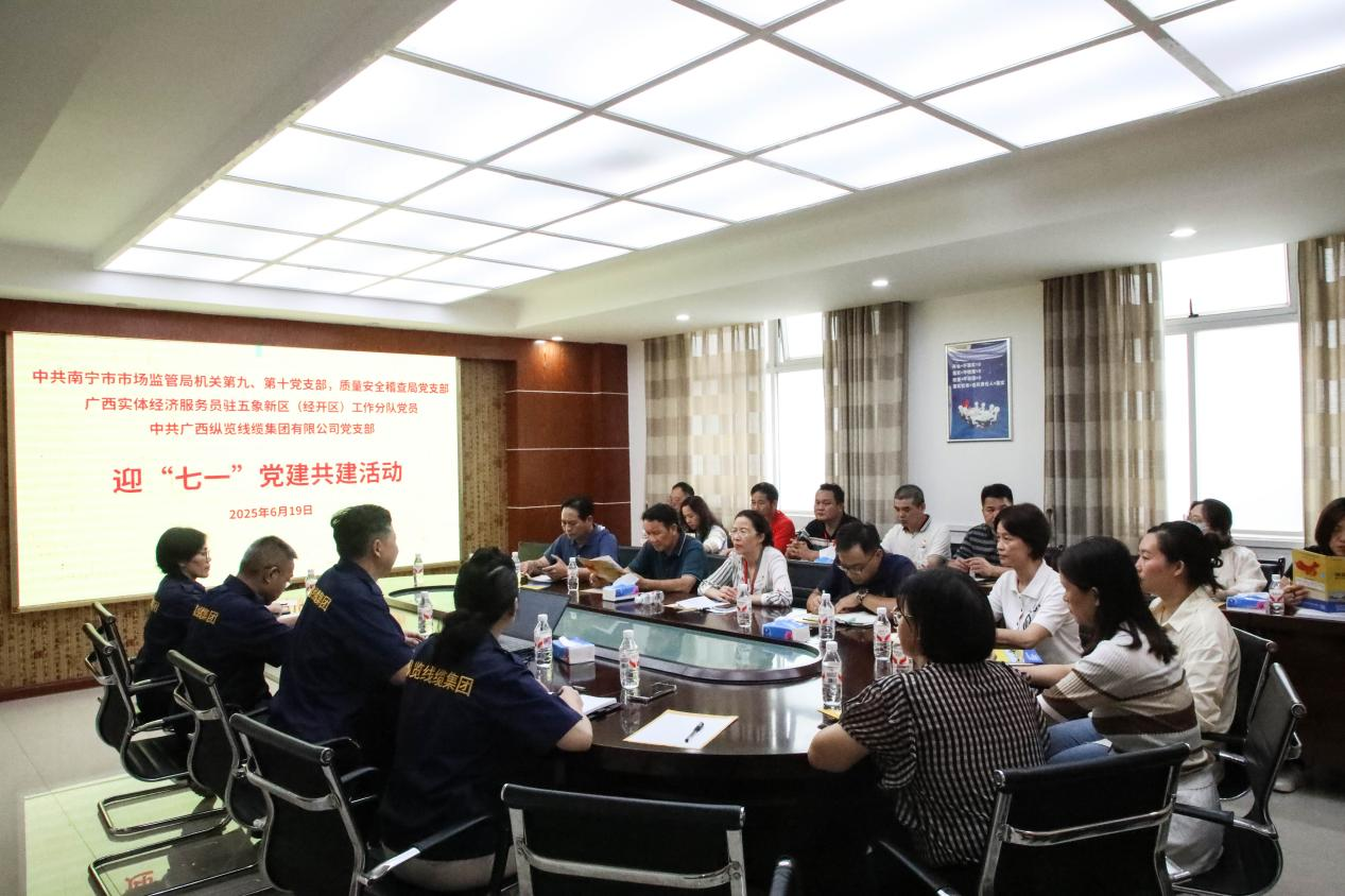 為迎接中國共產(chǎn)黨成立104周年,深化政企黨建交流,凝聚服務(wù)實(shí)體經(jīng)濟(jì)合力,6月19日,中共南寧市市場(chǎng)監(jiān)管局機(jī)關(guān)第九、第十黨支部,質(zhì)量安全稽查局黨支部和廣西實(shí)體經(jīng)濟(jì)服務(wù)員工作隊(duì)駐五象新區(qū)(經(jīng)開區(qū))分隊(duì)黨員代表,走進(jìn)縱覽線纜集團(tuán)開展黨建共建活動(dòng)。集團(tuán)黨支部書記、副總經(jīng)理吳培軍,集團(tuán)工會(huì)主席、副總經(jīng)理陳楊,經(jīng)銷渠道二部總監(jiān)韋艷秋等公司領(lǐng)導(dǎo)及黨員代表共同參與活動(dòng)。 活動(dòng)伊始,參加活動(dòng)的黨員在吳培軍等陪同下,零距離感受制造脈搏。大家深入縱覽線纜集團(tuán)現(xiàn)代化生產(chǎn)車間、榮譽(yù)展廳及CNAS認(rèn)可實(shí)驗(yàn)室,沉浸式了解縱覽線纜集團(tuán)在電線電纜研發(fā)創(chuàng)新、精益生產(chǎn)、現(xiàn)場(chǎng)管理、質(zhì)量把控及品牌建設(shè)等方面情況和取得的成就,直觀體會(huì)黨建引領(lǐng)下實(shí)體制造業(yè)的高質(zhì)量發(fā)展實(shí)踐。 隨后,在莊嚴(yán)的黨旗前,初心誓言再回響。雙方黨員列隊(duì)肅立,在領(lǐng)誓人的帶領(lǐng)下,高舉右拳,重溫鏗鏘有力的入黨誓詞。字字千鈞的承諾,再次強(qiáng)化了全體黨員的理想信念與使命擔(dān)當(dāng),激勵(lì)大家立足崗位,為服務(wù)地方經(jīng)濟(jì)發(fā)展貢獻(xiàn)力量。 座談會(huì)上,交流互鑒謀新篇。雙方圍繞“高質(zhì)量政企協(xié)同深化黨建引領(lǐng)統(tǒng)籌發(fā)展和安全,創(chuàng)新清廉建設(shè)方式、構(gòu)建親清新型政商關(guān)系將清廉機(jī)制嵌入企業(yè)生產(chǎn)與政務(wù)服務(wù)全鏈條,破解當(dāng)前經(jīng)濟(jì)形勢(shì)下企業(yè)市場(chǎng)開拓瓶頸”等主題展開深入探討。會(huì)場(chǎng)氣氛熱烈,聚焦問題,共商解決之道,在思想碰撞中明晰了未來深化合作、同頻共振的方向。 本次共建活動(dòng),通過實(shí)施聯(lián)合建設(shè)、黨員交流、資源共享以及共同規(guī)劃發(fā)展,不僅促進(jìn)了政府與企業(yè)之間的相互理解和信任,而且構(gòu)建了一座穩(wěn)固的溝通橋梁。縱覽線纜集團(tuán)亦將致力于完善企業(yè)治理架構(gòu)、管理體系、合規(guī)建設(shè)以及廉潔風(fēng)險(xiǎn)防范等關(guān)鍵領(lǐng)域,確保清廉合規(guī)建設(shè)貫穿于企業(yè)經(jīng)營發(fā)展的全過程中。結(jié)合企業(yè)使命“做好產(chǎn)品回報(bào)客戶、做好企業(yè)回報(bào)社會(huì)”,進(jìn)一步加強(qiáng)黨建工作的引導(dǎo)作用,推動(dòng)企業(yè)實(shí)現(xiàn)高質(zhì)量發(fā)展。此次活動(dòng)不僅在理念上達(dá)成了共識(shí),而且在實(shí)際行動(dòng)中找到了共同點(diǎn),為雙方未來的攜手并進(jìn)奠定了堅(jiān)實(shí)的基礎(chǔ)。 |